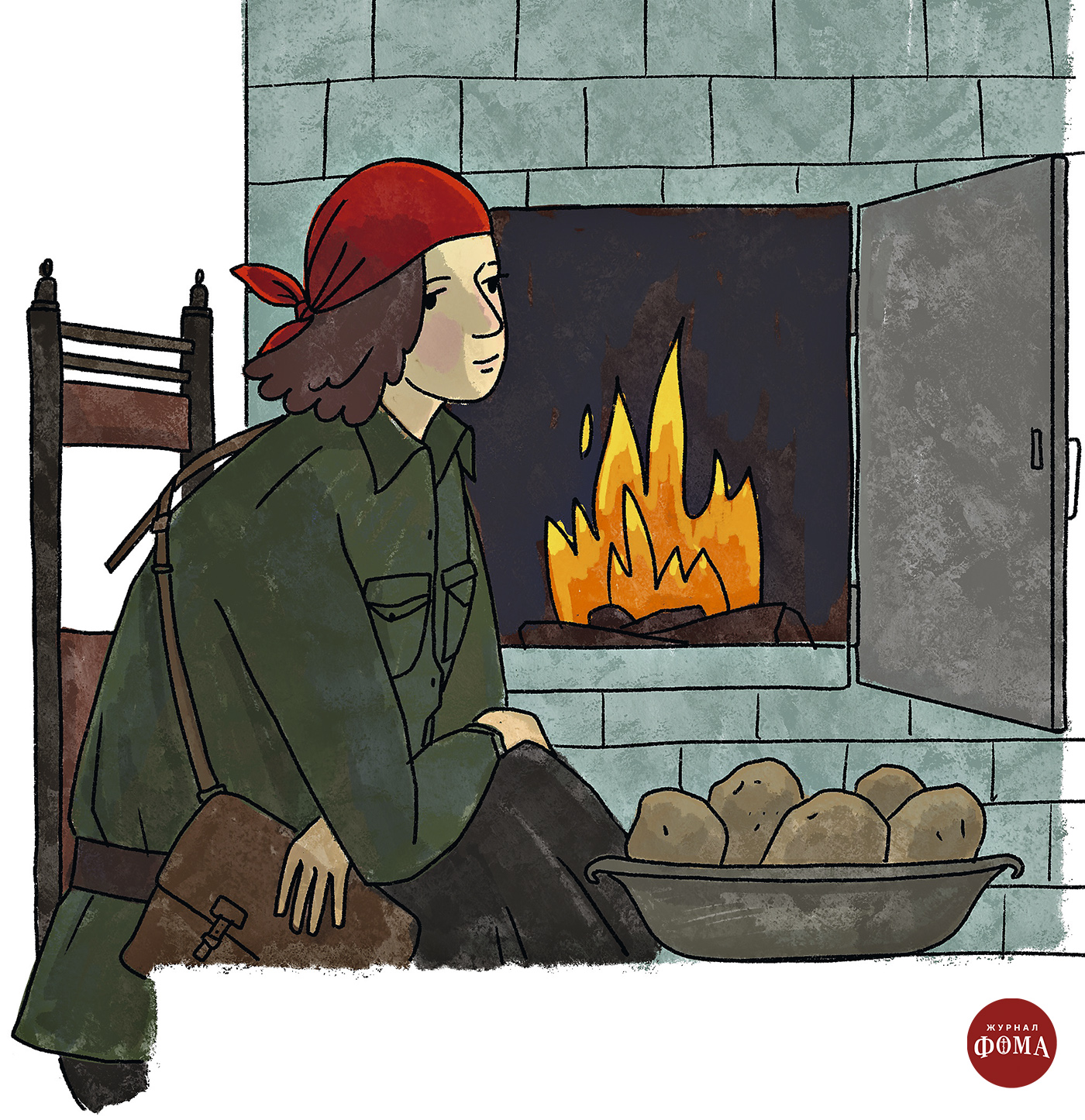 В пять часов охранники растапливают печи: без них в домике холодно. Патриарх сам ворошит кочергой дрова в топках. Совсем стемнело. Теперь можно и у огонька посидеть. Здесь тепло и уютно. Странно это выглядит со стороны: Патриарх, красноармеец и девушка с комсомольским значком пекут в печке картошку, переглядываются, смеются… Готово! Картошку вытаскивают из углей — она горячая, пахнет дымом, а если разломить, хрустит, пачкает пальцы и губы сажей, но какая вкусная! Течёт неспешный душевный разговор, живой и свободный. А куда торопиться? Двое — на службе, один — у них под надзором.